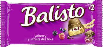 2 knusprige Riegel mit Volkorn und Waldbeerencreme.