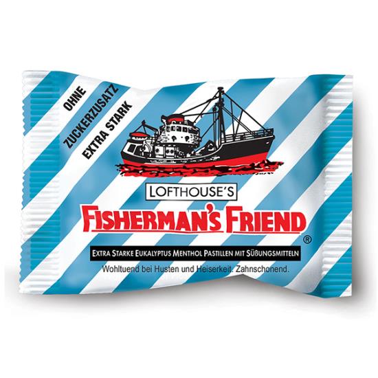 Bereits 1981 kam die erste zuckerfreie Fisherman’s Friend-Pastille in Deutschland auf den Markt. Fisherman’s Friend Extra Stark ohne Zuckerzusatz steht der Extra StarkVariante in Punkto Stärke und Geschmack in Nichts nach, ist jedoch völlig ohne Zucker – eine ganz neue Art, Fisherman’s Friend zu genießen.