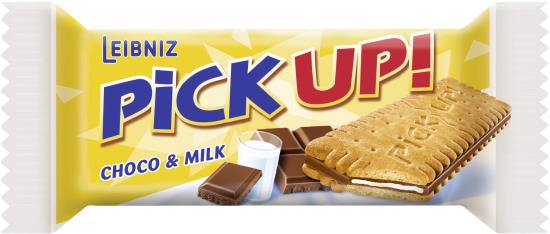 Für diese Milch braucht man Zähne: PICK UP! CHOCO &Milk hat zwar innen leckere Schokolade mit zarter Milchcreme. Aber die zwei echten LEIBNIZ Kekse außen sorgen für einen ordentlichen Knack. Also Vorsicht: nichts für Milchbubis.!