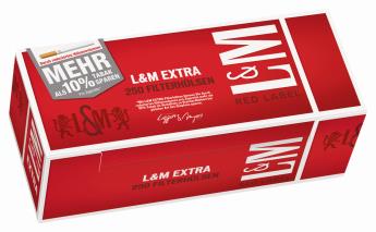 L&M Extra Red Label Zigarettenhülsen sind besonders abgestimmt auf die Verwendung von L&M Feinschnitt, eignen sich jedoch auch für alle anderen Tabaksorten. Die Hülsen haben einen längeren Filter als normale Filterhülsen, hierdurch können auch beim stopfen mit Feinschnitt bis zu 10% Tabak eingespart werden.