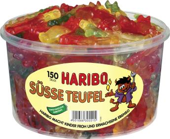 Verführerische Leckerei! HARIBO SÜSSE TEUFEL zählen seit vielen Jahren zum HARIBO-Stückartikelsortiment und begeistern immer noch genauso wie früher. Aromatisch, fruchtig, lecker garantiert ein himmlischer Spaß, die SÜSSEN TEUFEL zu genießen.
