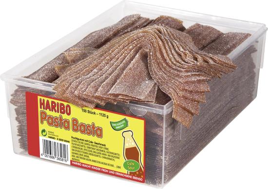 HARIBO Pasta Basta die „saure“ Überraschung für alle HARIBO-Fans. Die kandierten Fruchtgummistreifen hier in der trendigen Geschmacksrichtung Cola lassen das Herz von allen Leckermäulern mit dem extra sauren Geschmack höher schlagen.