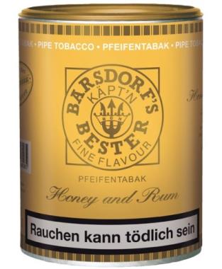 Die köstliche Tabakmischung des Barsdorf s Bester „Honey & Rum“ wurde aus hochwertig-sonnengereiften Virginiatabaken komponiert, die durch ein sanftweiches Honigund Rum-Aroma exklusiv abgerundet wird. Die Pfeifentabakmischung zeichnet sich durch eine gute Glimmbereitschaft und einem warmen Rauchverhalten aus und ist auf eine Schnittbreite von 1,6mm eingestellt.