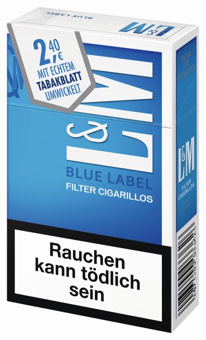 Philip Morris hat mit den L&M Filterzigarillos eine preiswerte Alternative zur Zigarette auf den Markt gebracht. Die L&M Filtercigarillos blue sind wie alle Eco-Cigarillos von Philip Morris im Kingsize-Format (normale Zigarettenlänge) erhältlich. Bei der neuen Ausführung des Eco-Zigarillos ist der Filter durch das äußere Deckund Umblatt vollständig umhüllt. Die Einlage besteht aus entripptem Mischtabak.