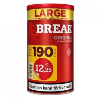 Break Original Volumentabak ist ein klassische American Blend – Full Flavour Mischung aus Virginia-, Burleyund Orient-Tabak. Durch sein spezielles Herstellungsverfahren ist der Volumentabak extra ergiebig und lässt sich durch die lockere Fülle des Tabaks besonders leicht stopfen.