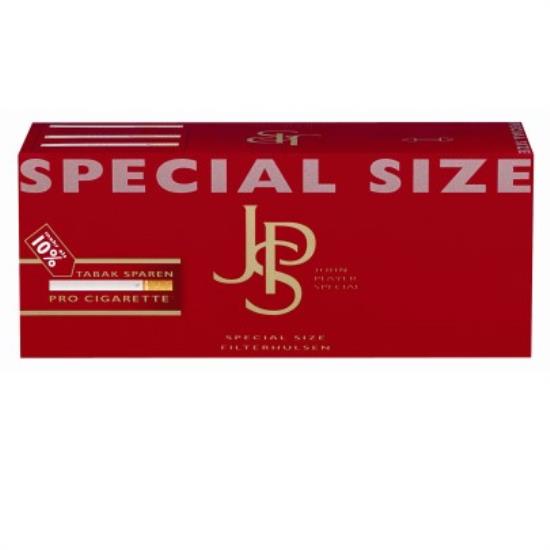 JPS Red Special Hülsen 250er sind ideal für die Herstellung einer JPS Filterzigarette mittels JPS Tobacco Rolls. Die JPS Special Size Hülsen besitzen einen längeren Filter, so dass der Füllraum eines in zwei Teile geschnittenen Tobacco Rolls entspricht. Die Hülse in der bekannten JPS Markenqualität kann natürlich auch für andere Rollies oder zum stopfen von Zigaretten verwendet werden.