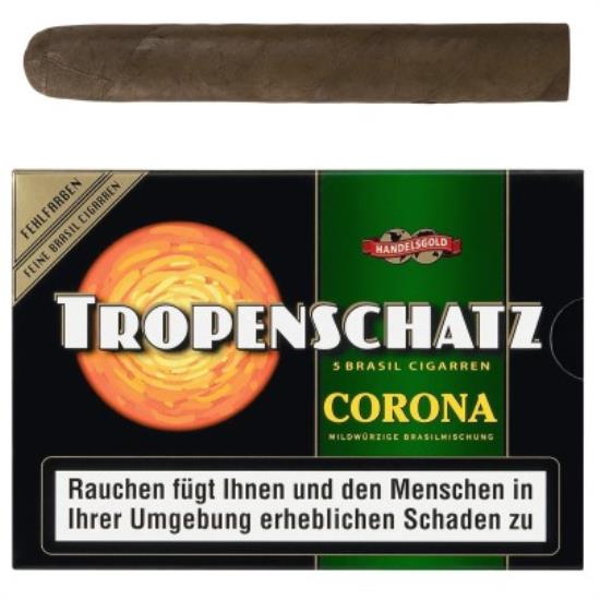 Die exotische Komposition aus feinen und würzigen Tabaken verleiht der Tropenschatz 824 F Cigarre den unverwechselbaren Charakter. In keinem anderen Land wird ein so geschmackvoller Tabak geerntet. Dieser Tabak ist die Seele einer einzigartigen Cigarre – der Tropenschatz aus dem Hause Arnold André. Die Tropenschatz gewinnt das Herz eines jeden Cigarrenkenners. Besonders das Fehlfarbensortiment – Cigarren mit unterschiedlichen Farbnuancen in einer Kiste. Das macht die Tropenschatz bei gleicher Qualität des Inhaltes etwas preisgünstiger. Zum Anzünden fast zu schade.